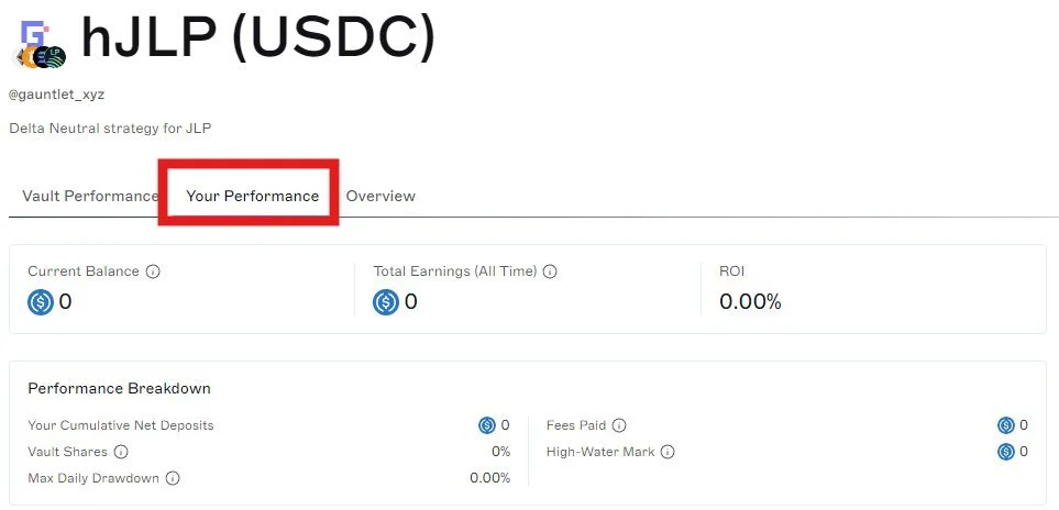 7. Make sure to check the performance of your deposit and compare with the vault performance