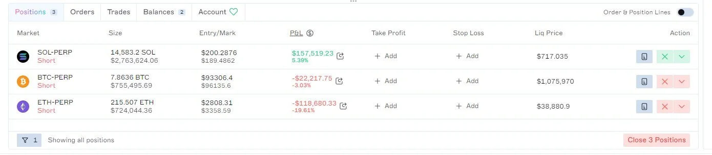 3. Gauntly opens short BTC, ETH, and SOL perpetuals position corresponding to the exposures of JLP’s underlying asset basket to neutralize the delta of the user positions